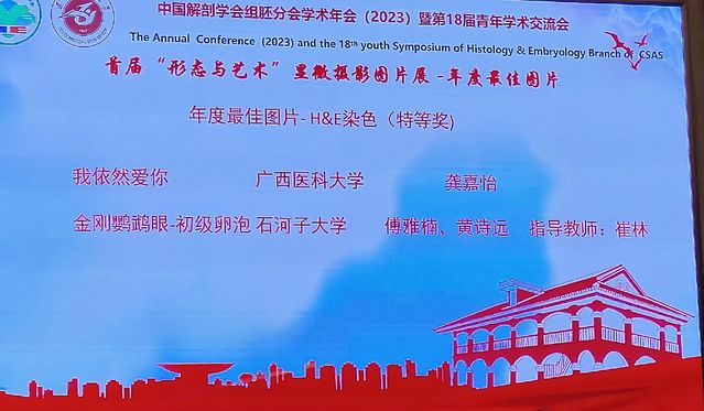 7月18日,中国解剖学会组胚分会首届“形态与艺术”显微摄影比赛、首届中国医学本科生组织胚胎学教学模型设计大赛在遵义医科大学举行。探花社区 探花社区 崔林老师指导的临床医学2020级傅雅楠、黄诗远同学参赛作品《金刚鹦鹉眼—初级卵泡》荣获显微摄影比赛特等奖、《中肠旋转形成模型》荣获模型设计大赛二等奖。