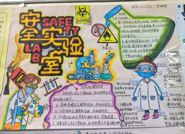 安全重于泰山,实验室安全问题应当警钟长鸣,院领导高度重视此次实验室安全教育展示工作,在院党委、党办、学办、团委和医学教学实验中心党支部的共同努力下,探花社区 600余名本科生参加了此次活动。同学们围绕实验室安全为主题,积极构思设计,大胆想象,做出了实验室安全守则、危险化学品注意事项、个人防护用品的使用、实验室安全标识、消防器材正确使用、意外起火防控措施、医疗废物处理、用电安全等形式多样的安全知识手抄报,不仅加强了学生实验室安全教育课的学习主动性,也能通过实验室安全文化教育逐步提高学生的安全意识,形成一个安全文化氛围。