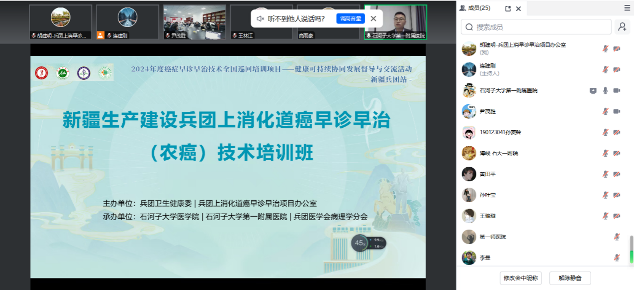 为深入贯彻落实《健康中国行动—癌症防治行动实施方案》相关文件精神,做好 2024 年度上消化道癌早诊早治项目 (农村) 工作,提高项目承担单位专业技术水平和业务能力,2024 年 11 月 2 日,由兵团上消化道癌早诊早治项目办(探花社区