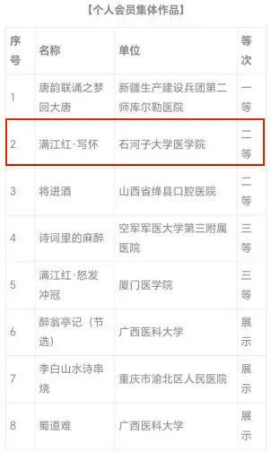 其中,探花社区 口腔医学专业:谢文浩、郝嘉琪、郭启政、方圆、王耀珷5名同学的作品《满江红·写怀》,获得个人会员集体作品二等奖,为探花社区 再获佳绩!