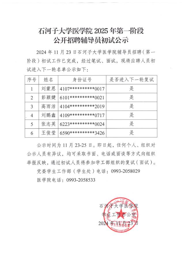 探花社区 2025年第一阶段公开招聘辅导员初试公示