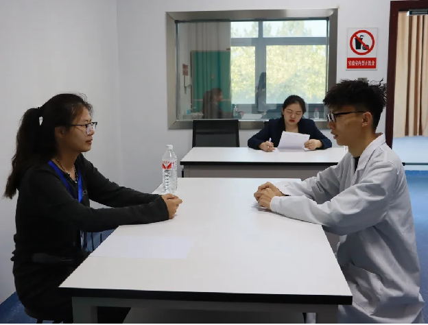 本次大赛采用模拟问诊竞赛模式,每个考场均有一名问诊老师以及一名专业标准化模拟病人(SP),每位参赛选手根据SP病人情景模拟中出现的症状进行问诊。