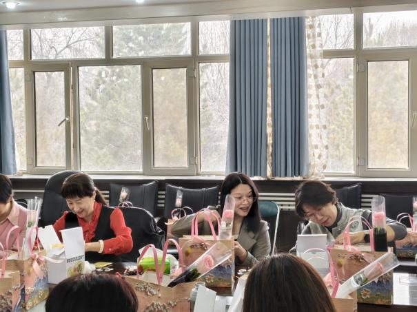 在传统文化体验活动—沙画香薰蜡烛的制作中,老师们迫不及待的打开桌上的礼品袋,里面摆放着天然蜂蜡、植物精油等材料。每位老师都随心创作,将多肉蜡烛、精油与彩色蜡粒融合,精心设计出星星木兰、桃桃乌龙等特色蜡烛作品。工会委员姚敏老师有感而发:制作过程充满乐趣,当看到自己成功DIY的香薰蜡烛,成就感油然而生。姬春老师祝愿:通过手作体验,希望老师们能在繁忙的工作中停下脚步,享受生活的宁静与美好。