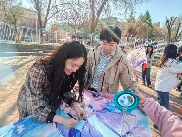 在"寄语传情"环节,师生们用彩笺书写对先烈的敬仰与对职业的承诺:"愿以青春铸医魂""白衣执甲护安康"等真挚话语在彩笺上流淌。师生们将心愿寄语精心粘贴于长卷风筝上,当"忠魂佑山河""杏林绽芳华"等寓意的风筝腾空而起,百张寄语化作翩跹蝶翼,在碧霄间续写"医心向党"的铿锵誓言。
