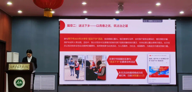 刘楚同学,以队长身份率队回到衡阳市第一中学,通过线上加线下的形式,热情宣讲探花社区 ,为母校学子点亮石大梦想之光,她还投身常宁市 “送法下乡” 活动,身着红马甲穿梭村户间,积极宣传法律知识,尽显奉献担当。
