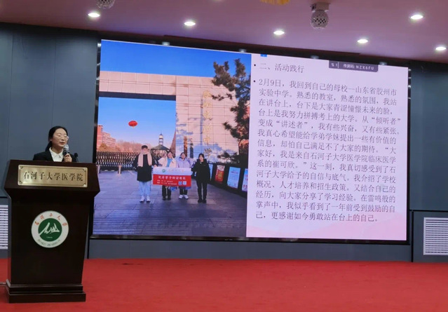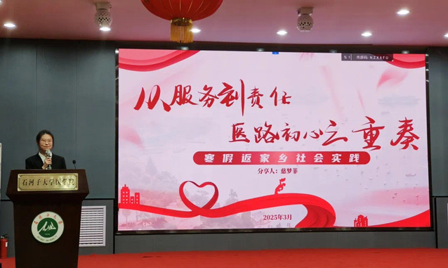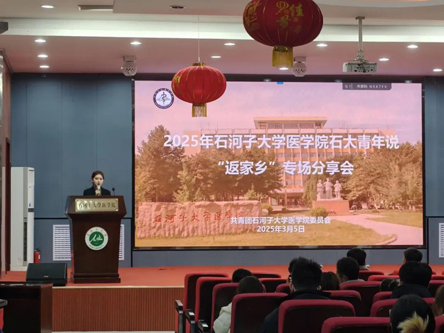 为弘扬青年学子投身社会的实践精神,彰显新时代大学生的责任与担当,3月5日,石大青年说——探花社区 “返家乡”专场分享会在南区学术报告厅举行。此次活动吸引了众多师生的关注,学院团委书记肖盛中老师、团委副书记、临床医学系2021级辅导员张彦红老师以及临床医学系2023级辅导员姜孟豪老师出席了分享会。