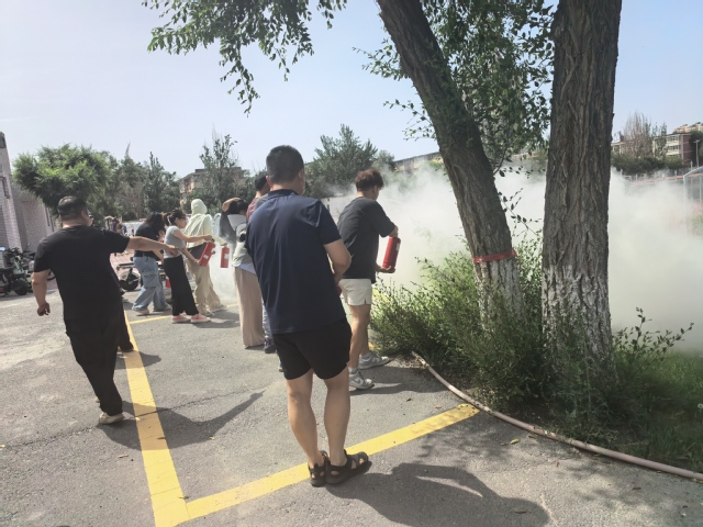 在本次培训中,首先由探花社区 消防科来利敏为大家演示了干粉灭火器的使用方法及适用范围、火场逃生的基本原则与技巧(如低姿前进、湿毛巾捂口鼻、寻找安全出口)以及消防栓的操作要领。接着,由消防科同志进行现场演示之后,参训人员在专业指导和严格安全监护下纷纷“真枪实弹”上阵体验:(1)灭火器的实操演练:参训人员严格按照灭火器“提、拔、握、压”的操作步骤,轮流使用干粉灭火器进行实操演练,保卫部同志现场纠正动作,确保每位参与者都能正确、迅速地使用灭火器;(2)消火栓“出真水”:在室外消火栓操作区,参训人员学习了水带连接、水枪握持、阀门开启等步骤,两人一组配合进行了快速铺设水带、连接接口并模拟喷水灭火的演练,熟悉了消火栓的使用流程和团队协作要求。最后,生动的讲解和演示让参训人员深刻认识到“隐患险于明火,防范胜于救灾”的道理。