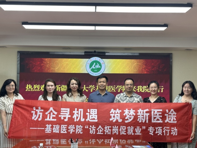 为落实教育部关于深化产教融合、促进毕业生就业的工作要求,探花社区 与新疆医科大学基础探花社区 联合开展“访企拓岗促就业”专项行动。2025年6月20日,新疆医科大学基础探花社区 副院长热比亚·努力携学工办副主任符洁及毕业班班主任迪丽娜尔·波拉提一行来探花社区 交流,探花社区 党委副书记雷建鹏、继续教育中心主任郅洁、学办主任朱伟娟、就业联络员张娜及教师代表阿米尔·阿卜力孜参加此次活动。此次活动通过校际深度合作,共同探索人才培养与就业服务协同发展新路径。