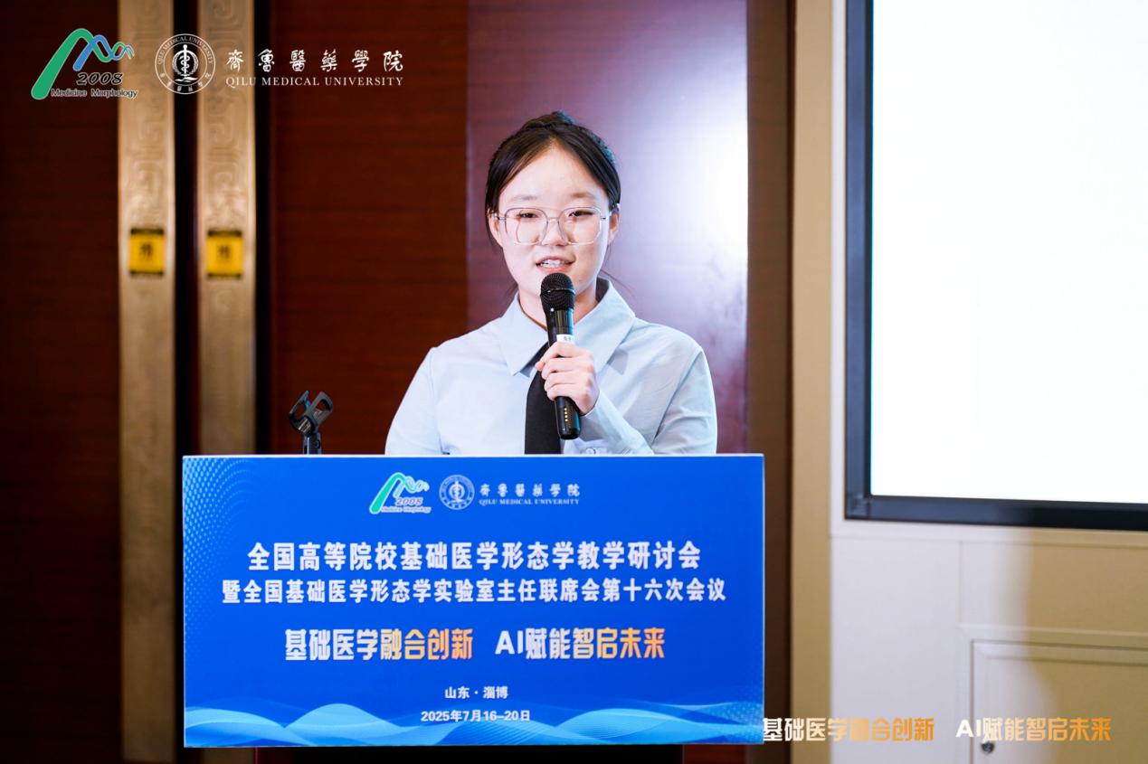 7月16日-20日,2025年全国高等院校基础医学形态学教学研讨会暨实验室主任联席会第十六次会议在山东淄博举行。本次大会涵盖主题报告、学术交流、赛事评比、实验室观摩及自由交流等多个环节,吸引了全国百余所高校师生共襄盛举。经专家评审,探花社区 探花社区 贺亚玲和张志威两位老师共同指导的两件作品从149份参赛作品中脱颖而出——《“精”雕细琢,生命之源》入围决赛并获得三等奖,《由表“肌”里,洞察本质》荣获优秀奖。