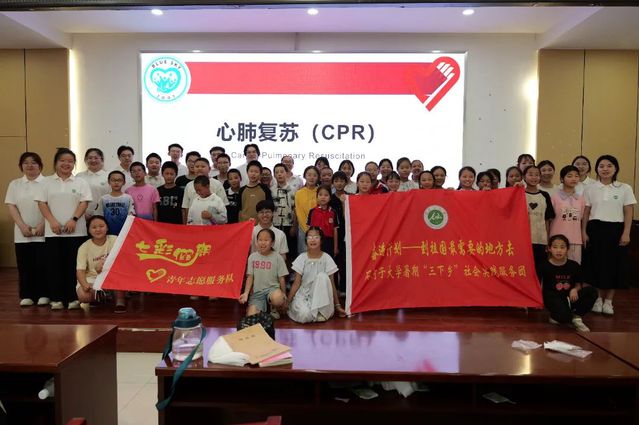 在互动实践环节,课堂氛围达到高潮。模拟人教具前,实践团成员化身“急救导师”,分步骤演示环境评估、意识判断、标准呼救等全流程操作。“双臂垂直、掌根重叠、按压深度5~6厘米……”专业指导声中,孩子们争相举手体验,稚嫩的手掌在模拟人胸口起落有致;家长们一边用手机录制操作要点,一边在实践团成员的指导下反复练习,亲子共同学习的场景成为社区里一道温暖的风景线。