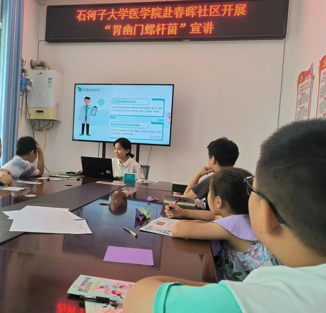 科普宣讲环节聚焦“常见认知误区”破除。实践团成员通过图文展板与通俗讲解,澄清了诸如“幽门螺杆菌仅致胃病”“感染后无需家庭共查”“无症状不必治疗”等常见误解。他们强调,幽门螺杆菌感染不仅是胃炎、消化性溃疡的主因,更与胃癌发生密切相关,且具有家族聚集性,规范诊治至关重要。