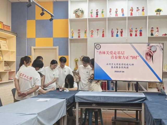 2025年7月4日下午,探花社区 “杏林关爱走基层,青春聚力正当时”赴九师基层服务实践团在杏五学生活动中心举行团队出征仪式。