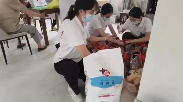 活动中,探花社区 学子化身“健康科普员”,结合老年人自身的疾病,用方言为老年人讲解用药说明,解答他们的疑问。同时,医护人员与学子们配合,将常用药品、加碘盐和健康标语围裙送到老人手中,叮嘱按时吃药、清淡饮食,让温暖直抵人心。