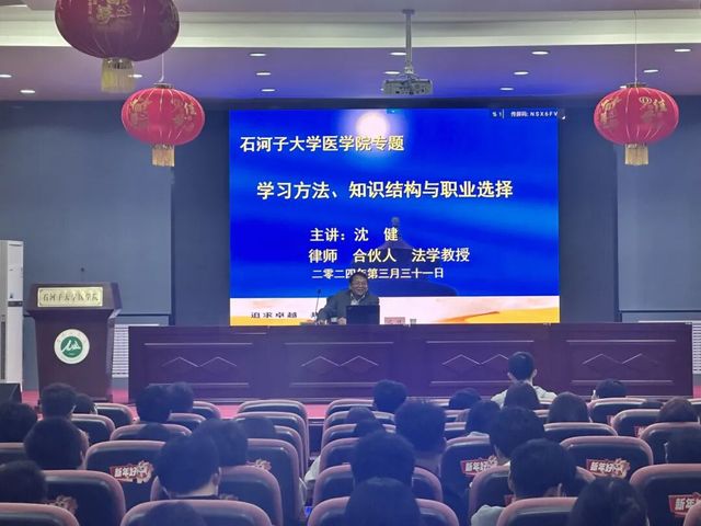沈健校友的讲座上,他用风趣幽默的语言、丰富详实的鲜活素材、旁征博引的名言警句,从学习方法、知识结构与职业选择三个方面向同学们做详细介绍,把从医道路上攀登的奋斗故事分享给在座的学弟学妹,并勉励同学们牢固掌握基础知识和专业知识,在日常学习生活中积累科研技能、提高医学素养。最后,沈健校友与同学们进行了互动环节,对同学们的问题进行答疑解惑,现场气氛热烈、场面活跃,同学们纷纷表示受益匪浅。