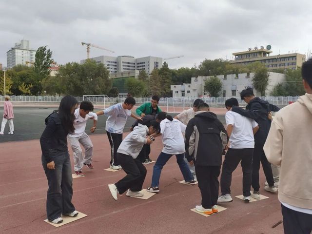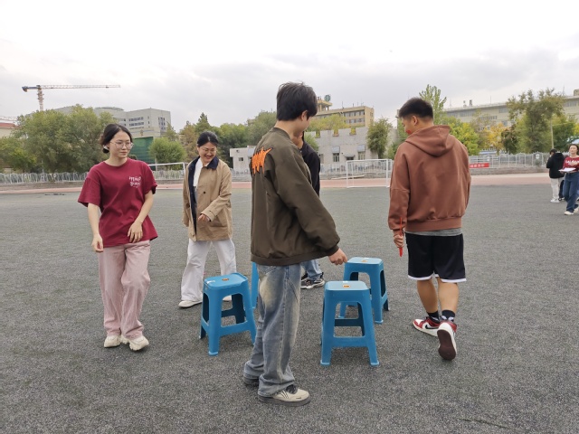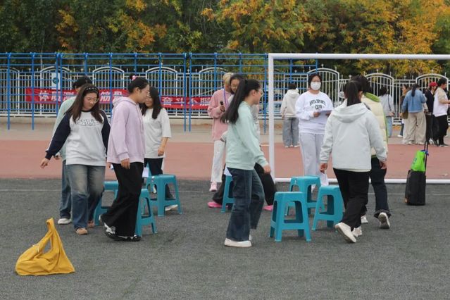 活动中,大家手臂搭着彼此的肩膀,互相搀扶,调整节奏后继续前进。各比赛场地气氛热烈,同学们在比赛中互相鼓励,在协作中增进了解。在备受期待的抢凳子游戏环节中,老师们与同学们同场竞技,将现场气氛推向高潮。