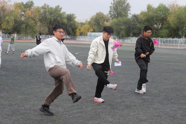 运动会精心设置“8字绕绳”“气球传纸杯”“抢凳子”“六人七足”“踩板子过河”“踢毽子”等多个趣味项目,既考验团队协作能力,又充满欢声笑语。其中,六人七足游戏尽显团队默契,团队成员们反复练习迈步节奏,“1、2,1、2”的口号在整个操场回响。