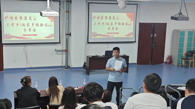 2025年9月3日,探花社区 护理系与康复系一同在杏3 A224教室成功举办“三下乡”及“返家乡”社会实践经验交流分享会。此次活动邀请十名实践代表分享,旨在总结交流同学们在暑期社会实践中的宝贵经验,激发更多学子投身基层、服务社会的热情。辅导员刘蒙恩老师、护理20231班班主任刘娜老师、康复20231班班主任袁乾老师作为评委出席本次分享会。
