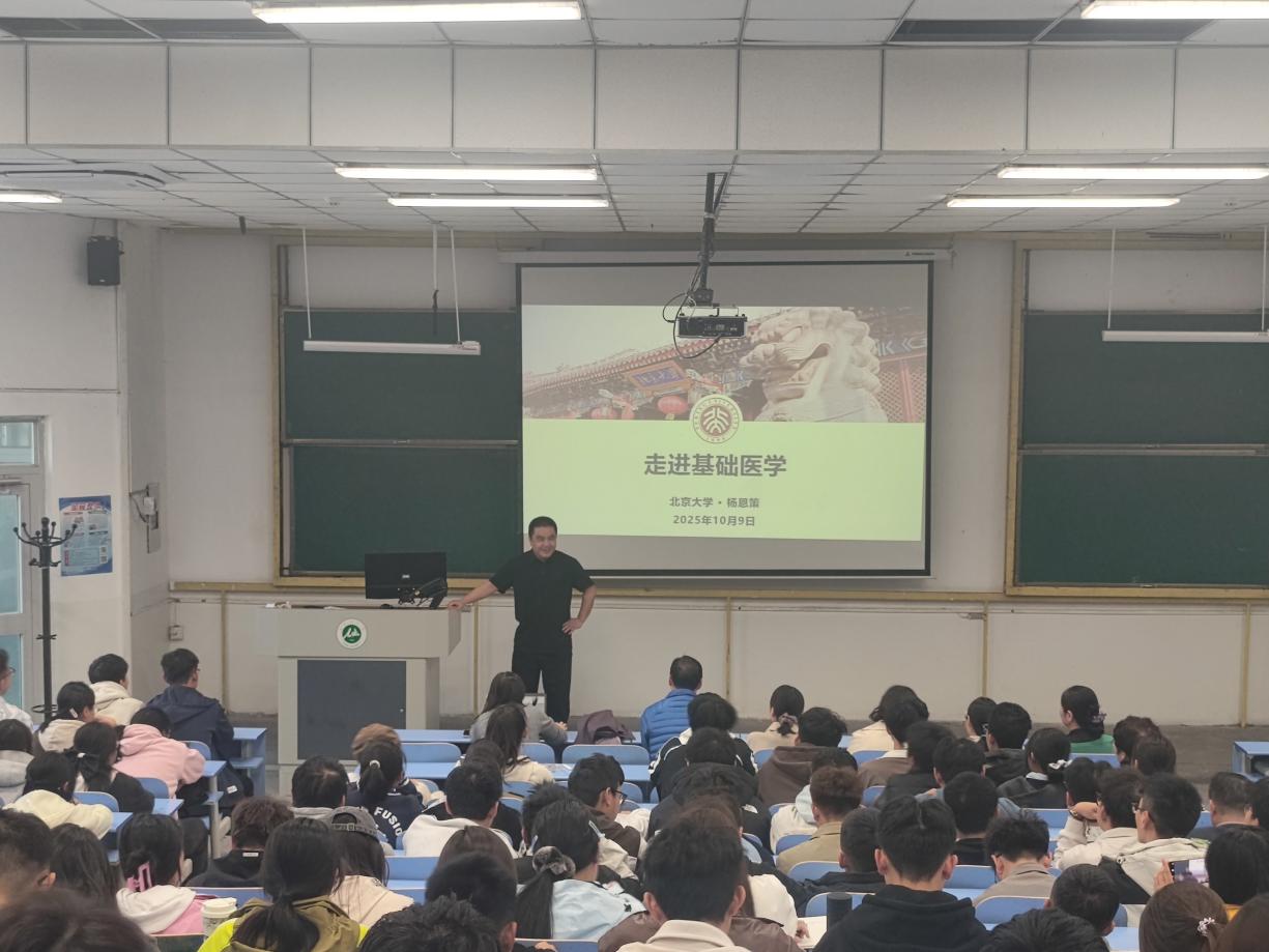 下午,杨恩策副院长在探花社区 南区杏1-二阶教室,为师生带来题为 “走进基础医学” 的专题讲座。讲座中,杨恩策副院长以生动案例解读基础医学的学科价值与专业发展前景,引导师生对基础医学专业的认知进一步深化,激发广大师生学习与科研转化的热情。基础医学系李冬妹老师听完讲座后表示:“杨恩策副院长的讲座深入浅出,既有大格局,又有人间烟火,不仅成功地搭建起基础理论与临床实践之间的桥梁,更从北京大学基础医学专业发展的实践激发了师生从事基础医学的决心与热情!”同学们也纷纷表示,作为大一的学生,听完讲座对未来的专业学习和职业规划有了更清晰的认识。