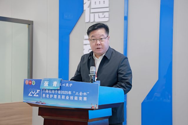 张青书记在致辞中表示,本次竞赛以“精技砺能·暖心照护”为主题,是积极响应国家高技能人才队伍建设部署、顺应师市养老护理事业发展需求的重要举措。他指出,随着兵团人口老龄化进程加快,老年人对专业照护的需求日益提升。竞赛对标国家级赛事标准,从理论、实操、照护计划到人文关怀全方位检验选手素养,不仅是技艺比拼的赛场,更是行业交流的平台与人才培养的摇篮。
