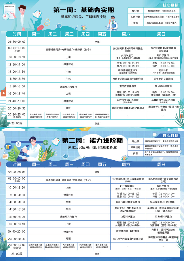 学习计划表挑战赛不仅是医学生规划能力的试炼场,更是学子们交流学习方法的舞台,选手们以清晰的规划逻辑与前瞻的学习视野,彰显了医学生的专业素养与成长担当。