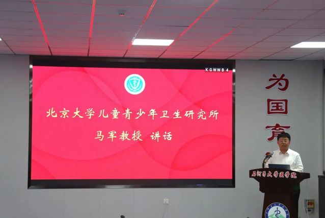 北京大学公共卫生学院副院长王海俊教授在发言中,回顾马军教授与探花社区 结缘的历程,介绍奖助学金设立背景,寄语石大学子珍惜学习机会,传承老一辈公卫人的治学精神。随后,马军教授深情讲述设立初衷:叶恭绍先生作为我国著名预防医学家、教育家和社会活动家,是中国儿童少年卫生学奠基人,毕生致力于儿童青少年卫生健康事业,其“预防为主”的理念与无私奉献精神值得永远传承。他希望通过该奖助学金,激励边疆学子深耕公卫领域,为国家健康事业贡献青春力量。