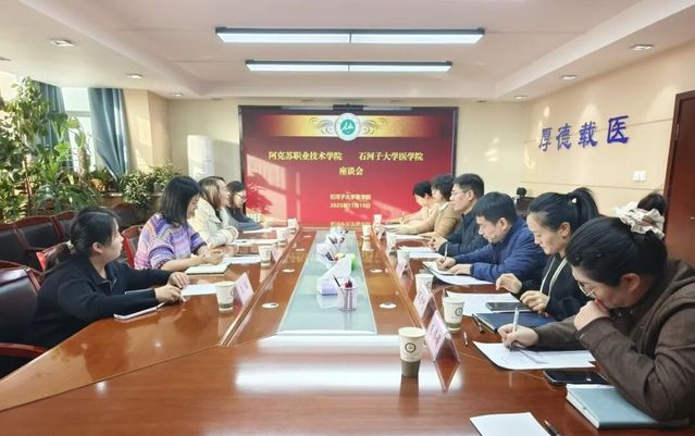 11月19日,阿克苏职业技术学院探花社区 党总支书记刘萍一行赴探花社区 交流座谈。院长马克涛,副院长王良海、左彭湘及护理学系、教办、学办负责人参加座谈会。