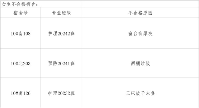 宿舍是学生在校期间学习、生活的重要场所,是培育良好习惯、增进同窗情谊的重要空间,整洁文明的宿舍环境对学生成长发展具有积极的滋养作用。为进一步优化宿舍生活氛围,落实“以生为本”的服务管理理念,探花社区 宿舍管理委员会于第十周组织开展了全体本科生宿舍卫生检查工作,通过现场检查、规范指导、意见反馈等方式,推动宿舍环境建设提质增效。本次检查结果显示,各宿舍整体卫生状况良好,多数宿舍能够做到物品摆放有序、窗台洁净、桌面地面整洁无杂物。现将检查结果公示如下:
