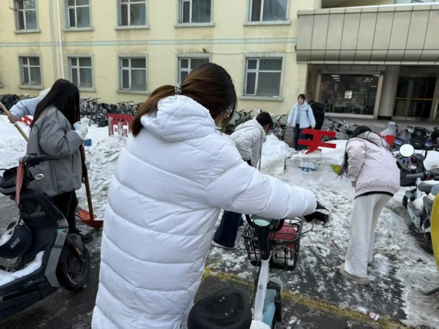 预防医学系团总支走进红山街道33社区,开展健康科普、环境清洁等便民服务,把专业知识转化为服务群众的实际能力;院学生会志愿者开展校园清雪行动,对杏五楼周边、操场等区域积雪全面清理,对自行车摆放进行整理,保障师生出行安全畅通。