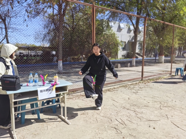 个人项目赛场活力满满,单人跳绳、趣味踢毽子、纸杯投球、跳方格等趣味项目有序开展。参赛同学身姿轻盈、反应敏捷,在限时挑战中全力以赴,跳绳赛场绳影翻飞、节奏明快,踢毽子与跳方格现场轻松欢乐、童趣十足,纸杯投球环节凝神瞄准、精准投掷,大家在轻松愉悦的比拼中展现自我、突破极限。